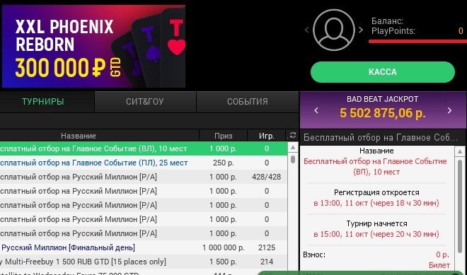 Пример: покерист внес на счет 2000 рублей, размер поощрения составляет 3000 рублей. В течение 60 дней потребуется заработать 12 000 PP для отыгрыша всего бонуса. Напомним, максимальная сумма поощрения на первый депозит составляет 30 000 рублей.