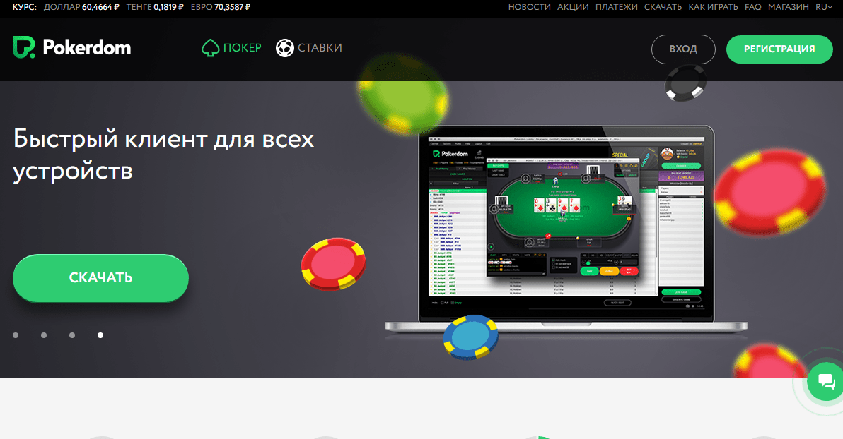 Игра на сайте без установки клиентской программы на компьютер имеет свои недостатки, но в отдельных случаях является единственным доступным вариантом. Наличие возможности играть в браузере на ПокерДом онлайн – уже само по себе преимущество, за которое покер руму можно поставить дополнительный плюс.